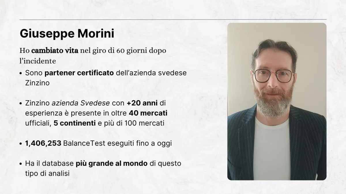 Giuseppe Morini ha cambiato vita nel giro di 60 giorni dopo l’incidente ed è un partner certificato dell’azienda svedese Zinzino